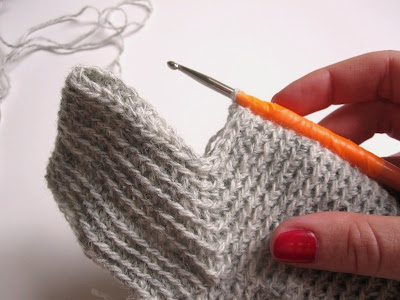 Herfra hækles der bare rundt til sokkerne er høje nok. Man kan hækle et par masker ind, hvis man vil have dem lidt strammere omkring anklen. Slut af med en runde stangmasker.